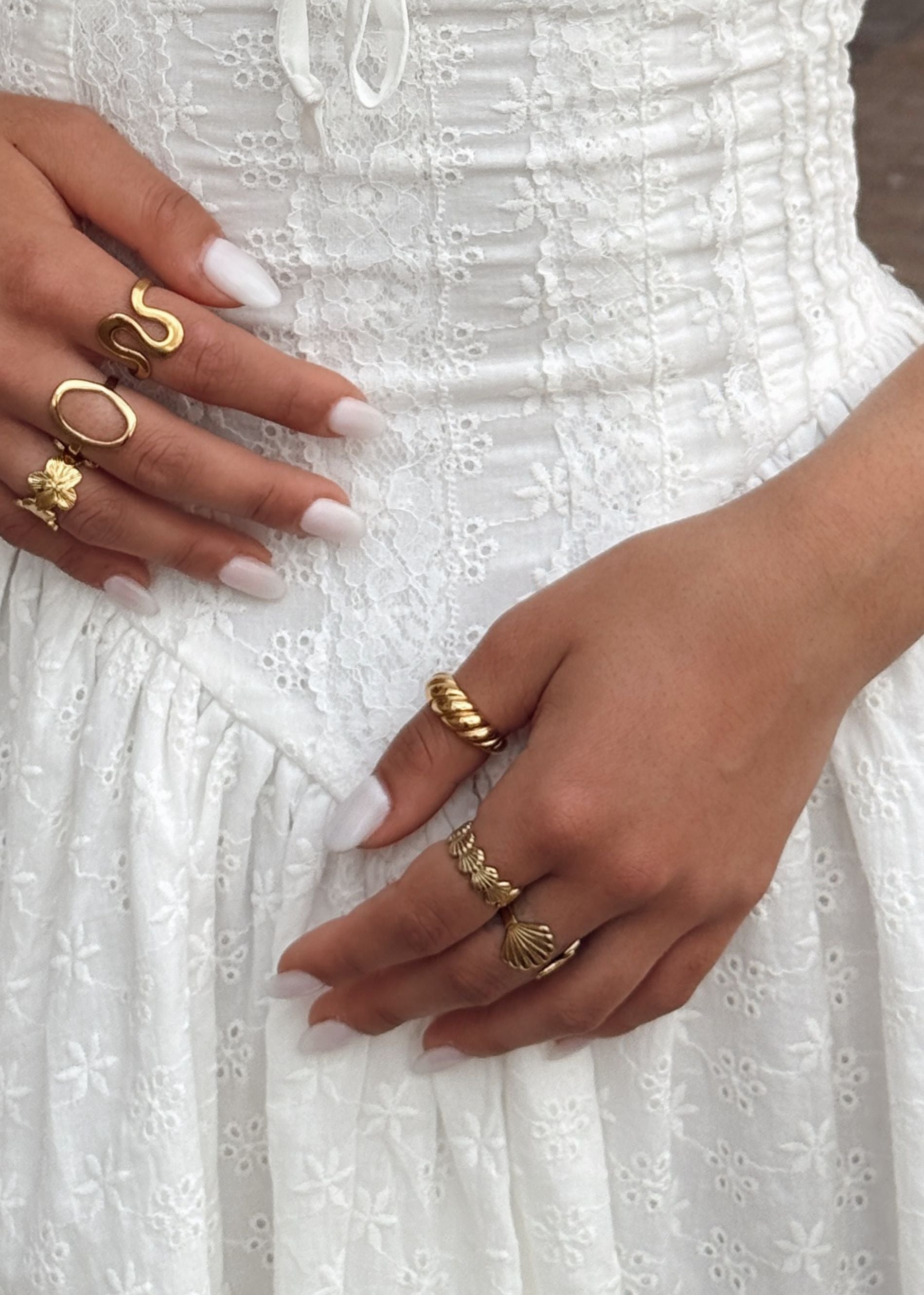 Sleek, sculptural, and made to shine — the Golden Hour Ring features an engraved twist design that catches the light from every angle. Available in gold or silver, this sized ring is crafted from water-resistant, gold PVD-plated stainless steel for a luxe look that lasts. Whether worn solo or stacked, it’s your new golden essential.